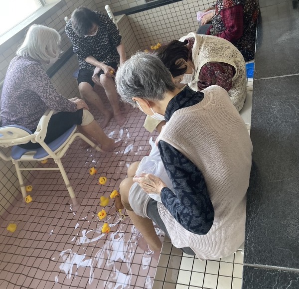 入浴の日には月替わりの入浴イベントを用意していて、3月はアヒルを浮かべて足湯を楽しまれたとのことです。