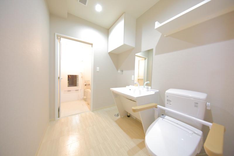 トイレ、収納設備、洗面台、キッチン、浴室