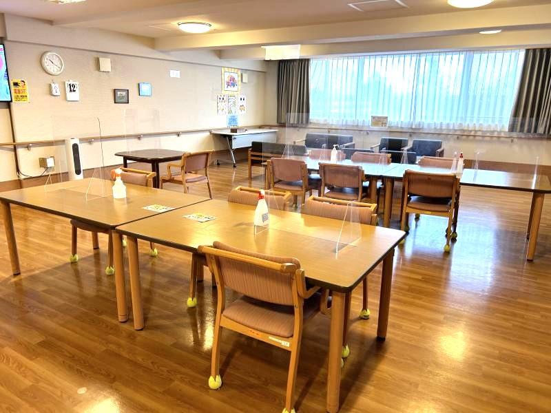 エレベーター(2基)、食堂(1・2・3階)、機能訓練コーナー(2・3階)、パントリー・洗濯乾燥室(2・3・4階)、ユニットバス(2・3階)、理美容室(3階)、デイルーム(小規模多機能居宅・4階)、大浴場(4階)、多目的室(個室・4室・4階)、メールボックス(1階)、相談室(1階)