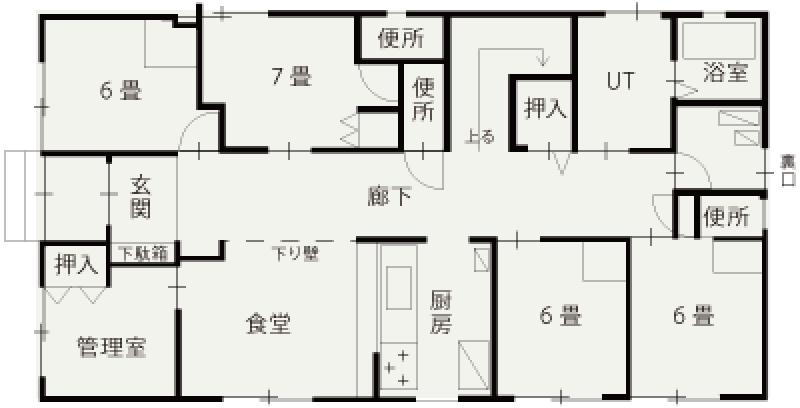 食堂、トイレ、浴室、押入、下駄箱、管理室