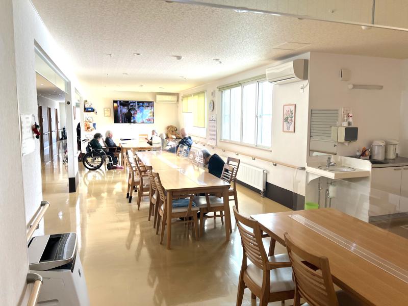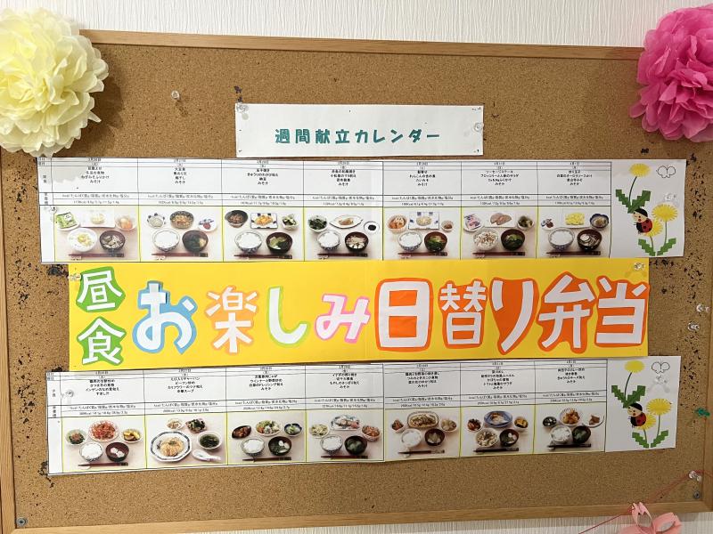 管理栄養士の作ったメニューに基づいて、お食事を手作りしています。食堂は13坪あり、雄大な自然を眺めながらのお食事をお楽しみください。