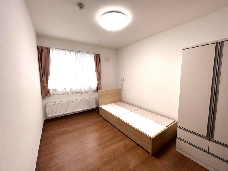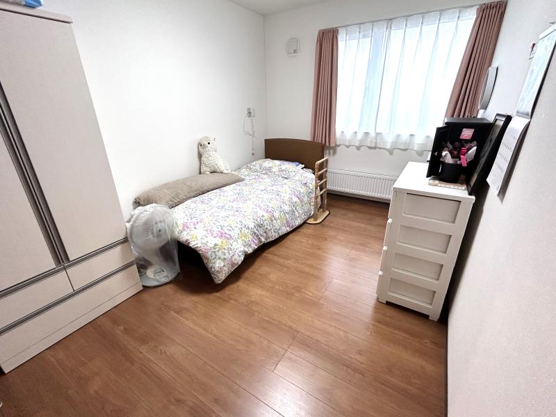 24時間の介護体制が整っており、快適にお過ごしいただけるバリアフリー構造です。居室は個室でベッドや収納など予めご用意しており、ご自由に家具をお持ち込みいただけます。
