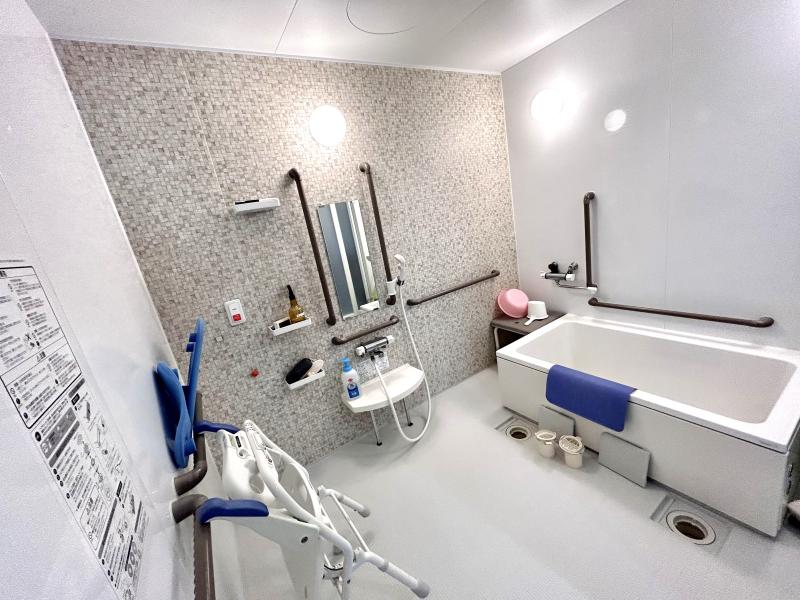 リビング、浴室、脱衣所、車椅子対応トイレ、洗濯室、面接室、エレベーター、厨房