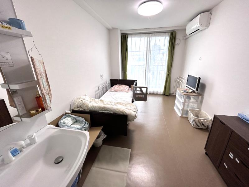 エアコン、ベッド、ナースコール、洗面台、収納