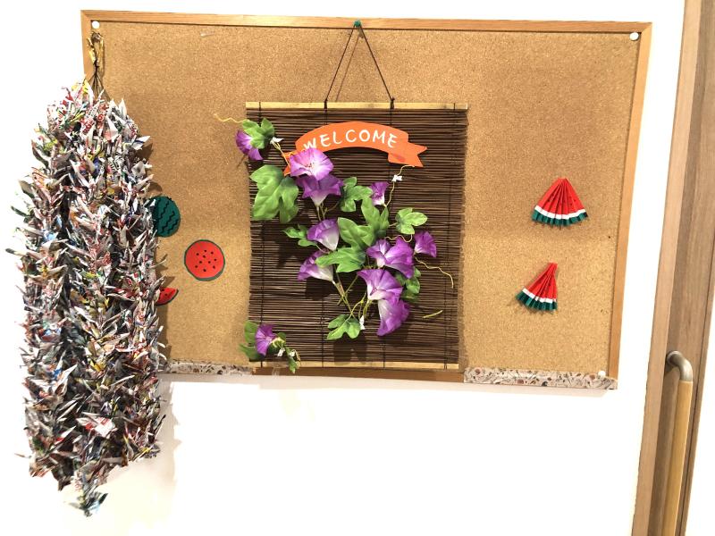 少人数制で個室に配慮しつつ、お部屋中央での交流やアットホームな雰囲気も大切にしています。ご入居者様に楽しんでいただけるよう誕生日会や季節レクリエーションも行っております。毎朝体操をしたり、認知症ケアも積極的に取り組んでいます。
