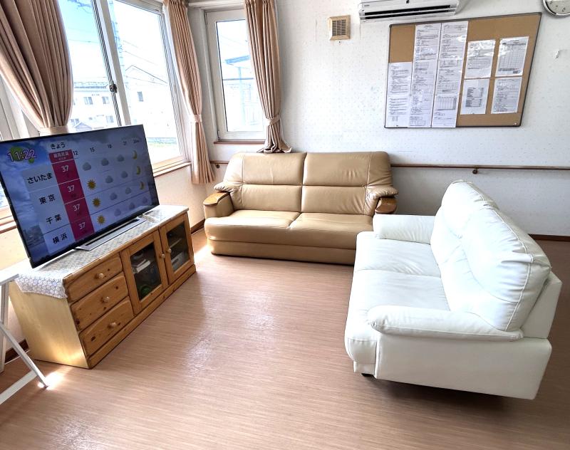 ご入居者様は交流が好きな方が多く、リビングで職員と会話したり、テレビや歌番組を一緒に見て過ごすことが多いため、毎日をゆったり過ごしていただける環境です。職員は短くて3年以上、大半は10年以上勤めており、職員が変わらないからこそのアットホーム感があります。ご入居いただく中で介護度があがっても安心してご入居していただけます。