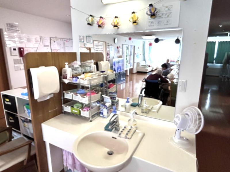 入居者様はお掃除や食器洗いなど、自分が得意なことをして過ごされています。職員はそんな入居者様を見守り、出来ないところをお手伝いしています。