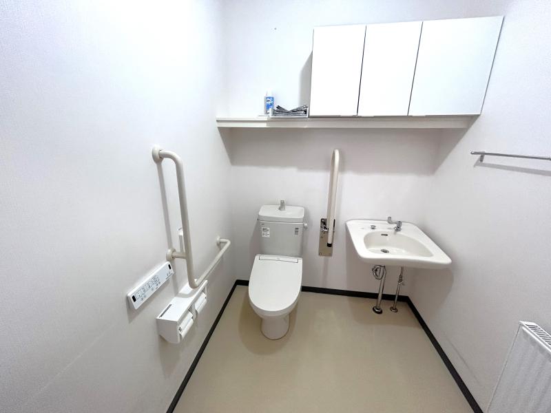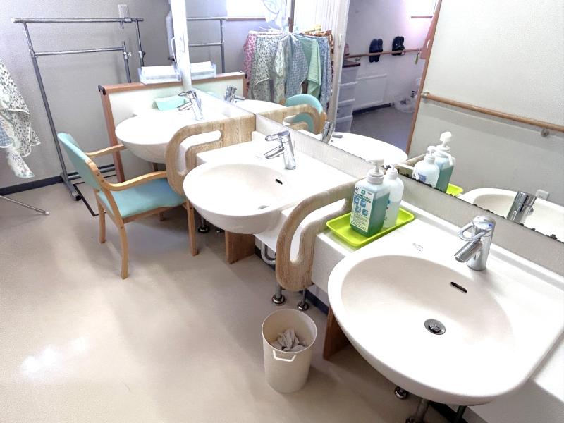 居間・食堂、車椅子対応トイレ、洗面台、浴室、台所、洗濯室、エレベーター、談話室、相談室、事務室