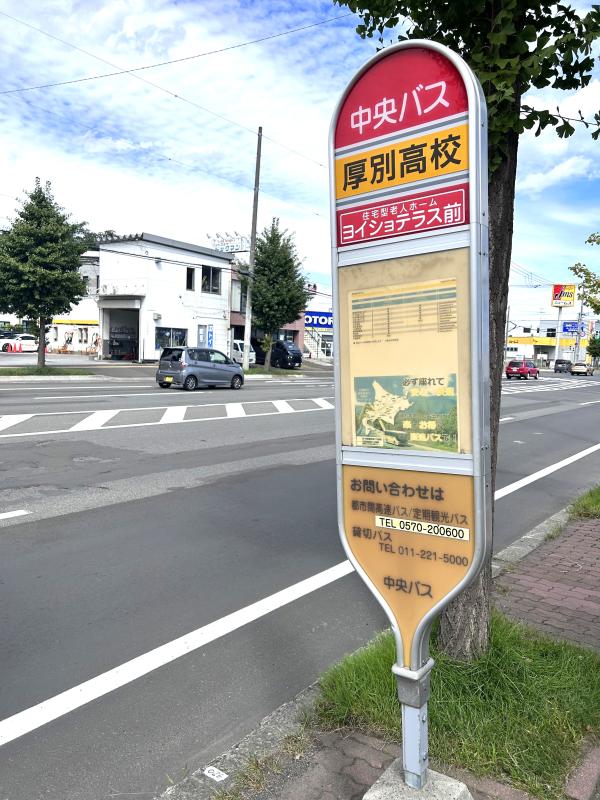 【バス】市バス「白38」厚別通線「厚別高校」下車、徒歩2分