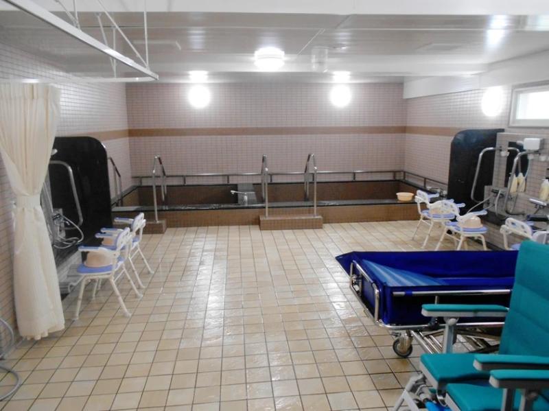 ロビー、食堂、多目的室、相談室、応接室、健康管理室、一般浴室、機械浴室、ストレッチャー浴、トイレ、ケアコール、スプリンクラー、監視カメラ27台、監視モニター、コールライト