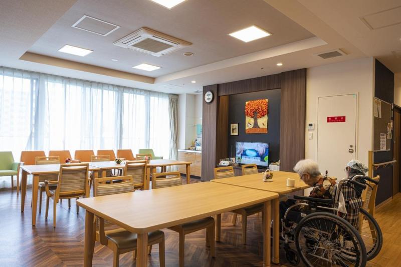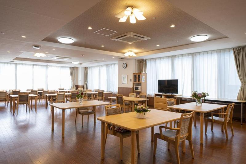 【人と人とのつながりを感じる健康的な毎日とお食事】 食堂や共有スペースで皆様と召し上がっていただくお食事やおやつ、定期的なレクリエーションなど一日に複数回他のご入居者様やスタッフと過ごす時間を提供しています。施設内は、共有スペースをなるべく広くとるよう設計しており、ゆったりとした間取りが特徴です。快適で心地よい「つながり」を生み出す環境を目指しています。また、お食事は単に「美味しい」「健康に配慮した栄養管理」を目指すだけではなく、グループ会社のHITOWAフードサービスが施設内で調理しお身体の状況に合わせた食形態や季節を感じるイベント食などを提供することで、入居者様の生活の質(QOL)の向上を目指しています。