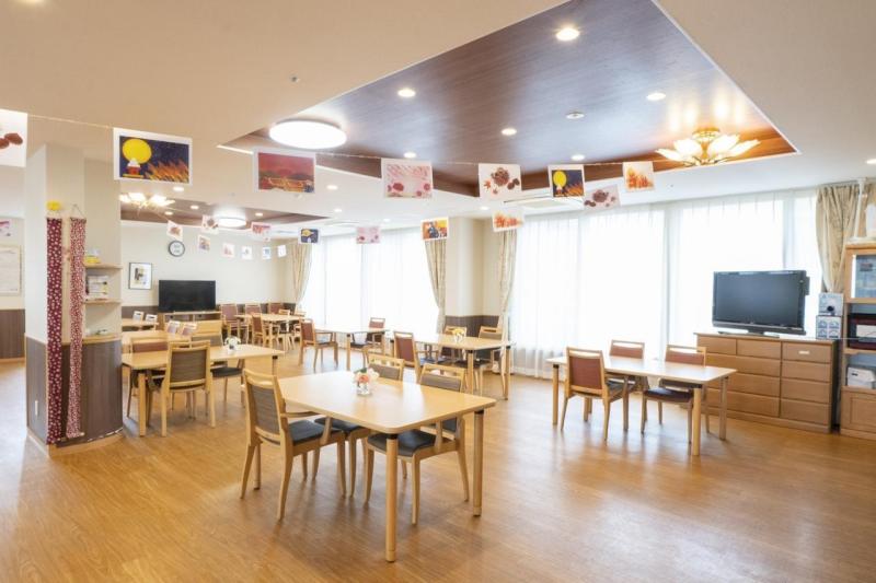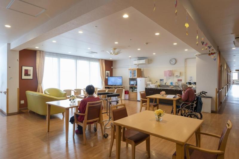 【人と人とのつながりを感じる健康的な毎日とお食事】 食堂や共有スペースで皆様と召し上がっていただくお食事やおやつ、定期的なレクリエーションなど一日に複数回他のご入居者様やスタッフと過ごす時間を提供しています。施設内は、共有スペースをなるべく広くとるよう設計しており、ゆったりとした間取りが特徴です。快適で心地よい「つながり」を生み出す環境を目指しています。また、お食事は単に「美味しい」「健康に配慮した栄養管理」を目指すだけではなく、グループ会社のHITOWAフードサービスが施設内で調理しお身体の状況に合わせた食形態や季節を感じるイベント食などを提供することで、入居者様の生活の質(QOL)の向上を目指しています。
