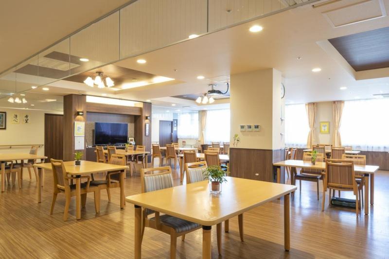 【人と人とのつながりを感じる健康的な毎日とお食事】 食堂や共有スペースで皆様と召し上がっていただくお食事やおやつ、定期的なレクリエーションなど一日に複数回他のご入居者様やスタッフと過ごす時間を提供しています。施設内は、共有スペースをなるべく広くとるよう設計しており、ゆったりとした間取りが特徴です。快適で心地よい「つながり」を生み出す環境を目指しています。また、お食事は単に「美味しい」「健康に配慮した栄養管理」を目指すだけではなく、グループ会社のHITOWAフードサービスが施設内で調理しお身体の状況に合わせた食形態や季節を感じるイベント食などを提供することで、入居者様の生活の質(QOL)の向上を目指しています。