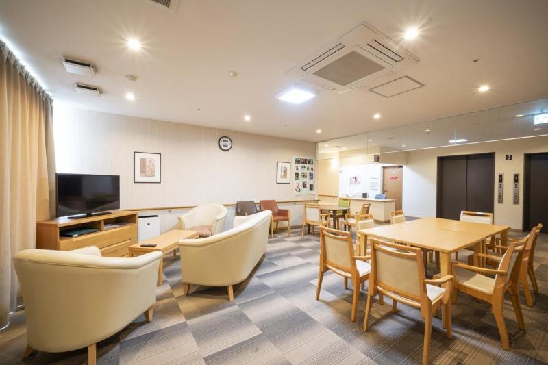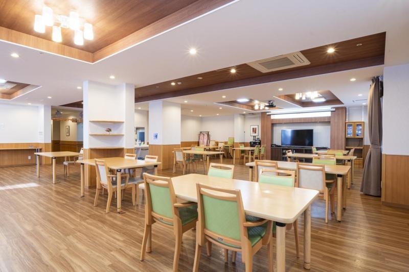 【人と人とのつながりを感じる健康的な毎日とお食事】 食堂や共有スペースで皆様と召し上がっていただくお食事やおやつ、定期的なレクリエーションなど一日に複数回他のご入居者様やスタッフと過ごす時間を提供しています。施設内は、共有スペースをなるべく広くとるよう設計しており、ゆったりとした間取りが特徴です。快適で心地よい「つながり」を生み出す環境を目指しています。また、お食事は単に「美味しい」「健康に配慮した栄養管理」を目指すだけではなく、グループ会社のHITOWAフードサービスが施設内で調理しお身体の状況に合わせた食形態や季節を感じるイベント食などを提供することで、入居者様の生活の質(QOL)の向上を目指しています。