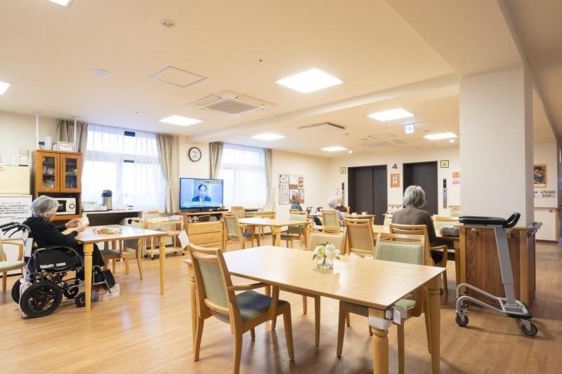 【人と人とのつながりを感じる健康的な毎日とお食事、天然温泉】 食堂や共有スペースで皆様と召し上がっていただくお食事やおやつ、定期的なレクリエーションなど一日に複数回他のご入居者様やスタッフと過ごす時間を提供しています。施設内は、共有スペースをなるべく広くとるよう設計しており、ゆったりとした間取りが特徴です。快適で心地よい「つながり」を生み出す環境を目指しています。また、お食事は単に「美味しい」「健康に配慮した栄養管理」を目指すだけではなく、グループ会社のHITOWAフードサービスが施設内で調理しお身体の状況に合わせた食形態や季節を感じるイベント食などを提供することで、入居者様の生活の質(QOL)の向上を目指しています。また、イリーゼ篠路は、地下から直接くみ上げている天然温泉をご利用いただけます。