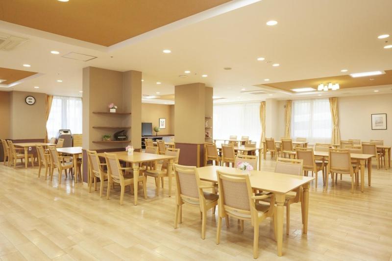 【人と人とのつながりを感じる健康的な毎日とお食事】 食堂や共有スペースで皆様と召し上がっていただくお食事やおやつ、定期的なレクリエーションなど一日に複数回他のご入居者様やスタッフと過ごす時間を提供しています。施設内は、共有スペースをなるべく広くとるよう設計しており、ゆったりとした間取りが特徴です。快適で心地よい「つながり」を生み出す環境を目指しています。また、お食事は単に「美味しい」「健康に配慮した栄養管理」を目指すだけではなく、グループ会社のHITOWAフードサービスが施設内で調理しお身体の状況に合わせた食形態や季節を感じるイベント食などを提供することで、入居者様の生活の質(QOL)の向上を目指しています。