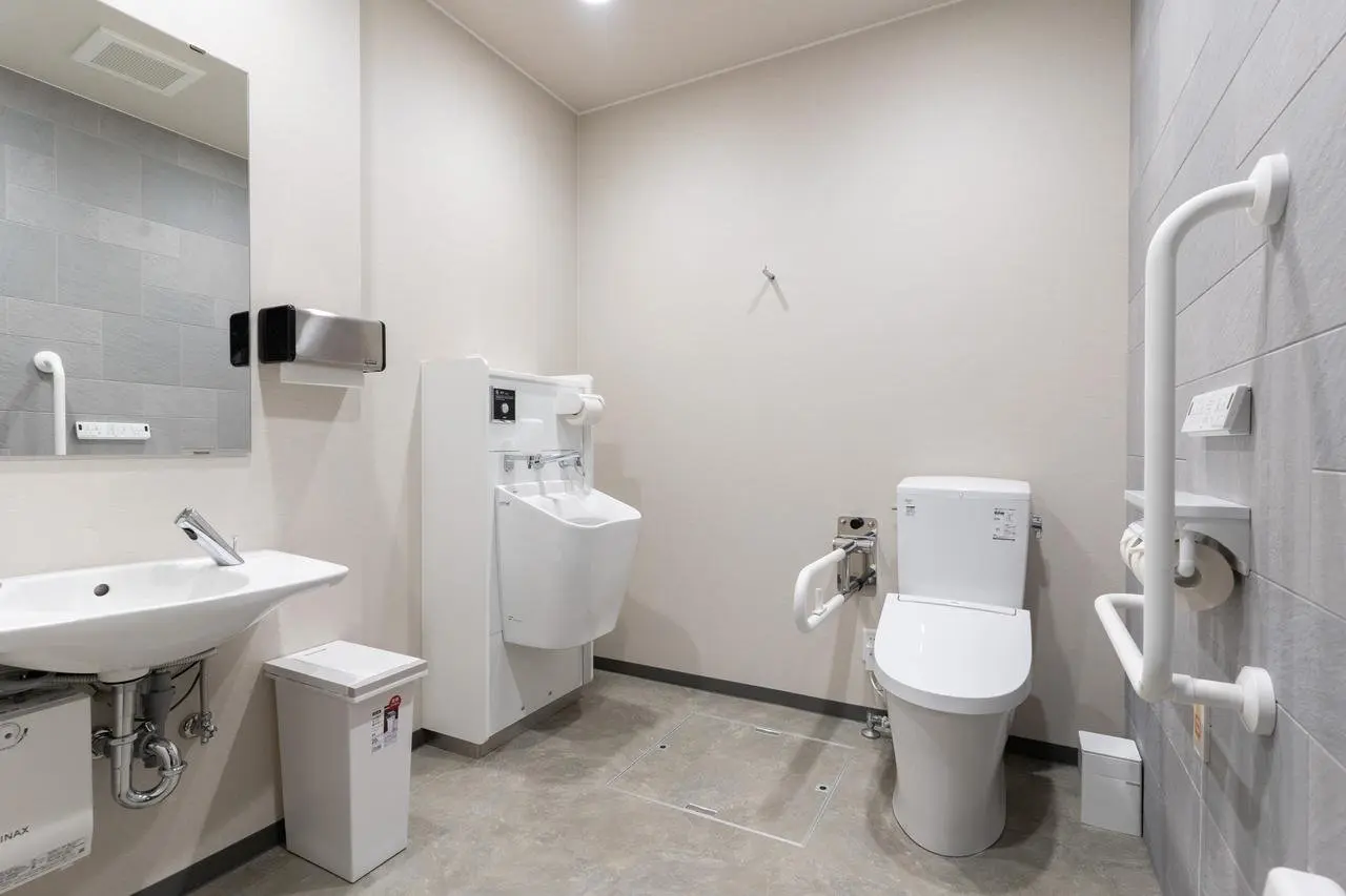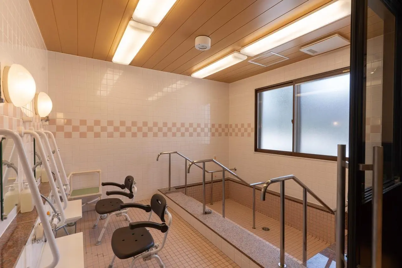 エントランス、ロビー、食堂(兼機能訓練スペース)、リビング、相談室、健康管理室、個浴室、一般浴室、機械浴室、脱衣室、温水洗浄機能付共用トイレ、ヘルパーステーション、エレベーター
