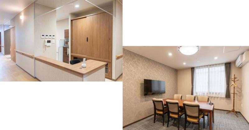 【人と人とのつながりを感じる健康的な毎日とお食事】 食堂や共有スペースで皆様と召し上がっていただくお食事やおやつ、定期的なレクリエーションなど一日に複数回他のご入居者様やスタッフと過ごす時間を提供しています。施設内は、共有スペースをなるべく広くとるよう設計しており、ゆったりとした間取りが特徴です。快適で心地よい「つながり」を生み出す環境を目指しています。また、お食事は単に「美味しい」「健康に配慮した栄養管理」を目指すだけではなく、グループ会社のHITOWAフードサービスが施設内で調理しお身体の状況に合わせた食形態や季節を感じるイベント食などを提供することで、入居者様の生活の質(QOL)の向上を目指しています。