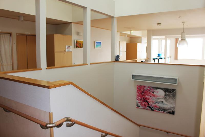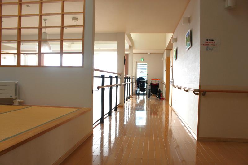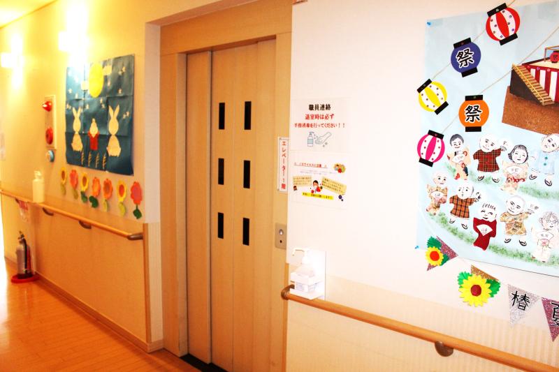 ウッドデッキ、エレベーター、ナースコール、リビングルーム、バーベキューコーナー、Free Wi-Fi、一般浴室、中庭、共用トイレ、各室インターホン設備(ナースコールとは別)、和室、家庭菜園、応接室、洗濯室、洗面室、玄関ホール、自販機、花壇、足浴、車椅子用トイレ、避難設備、防災設備、食品庫、ダイニングルーム(食堂)、駐車場、駐輪場