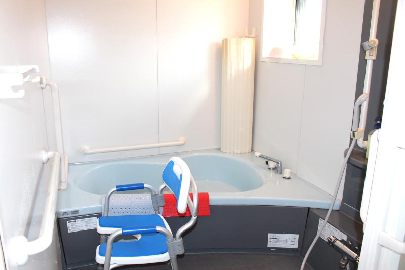 中庭、遊歩道、駐車場、駐輪場、食堂、一般浴室、座位型シャワー、共用トイレ、車椅子用トイレ、更衣室、談話室、スタッフルーム、介護浴室、ナースコール、共有キッチン、リネン室、汚物処理室、異常監視システム、放送設備、防災設備、避難設備、脱臭設備