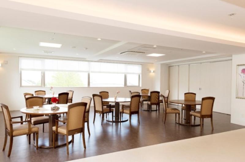 食堂、ルーフテラス、談話室、機能訓練コーナー、浴室、機械浴室、洗濯室、汚物処理室、エレベーター(1基)、車いす対応共用トイレ、共同キッチン、喫煙室、健康管理室、相談室