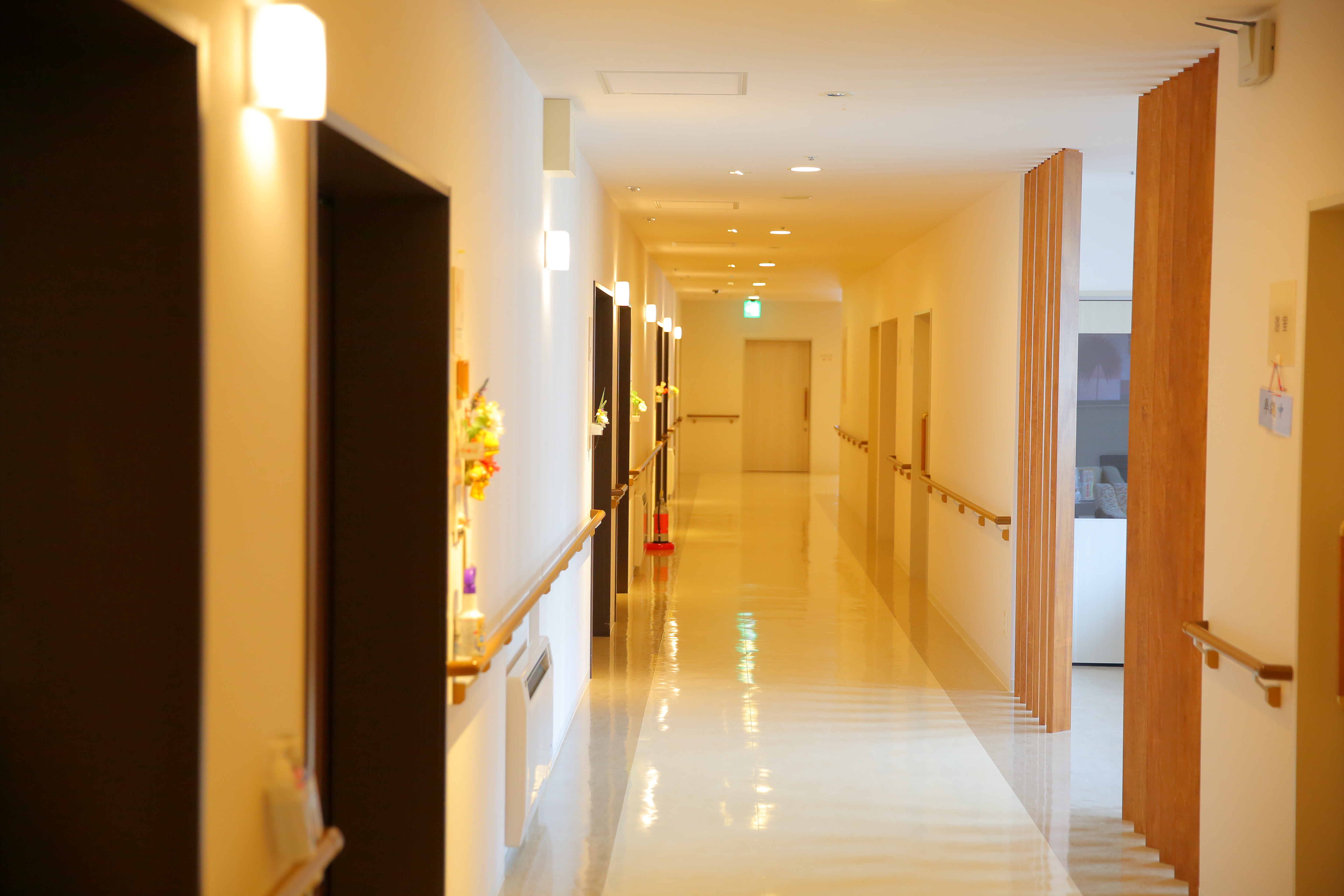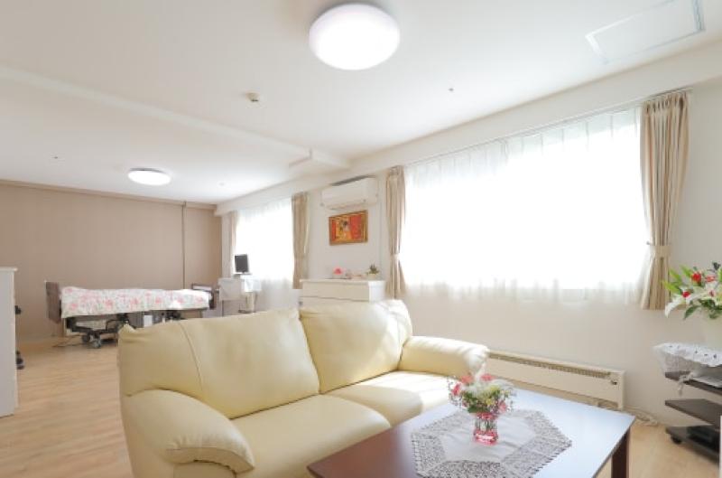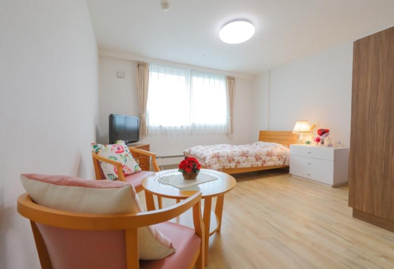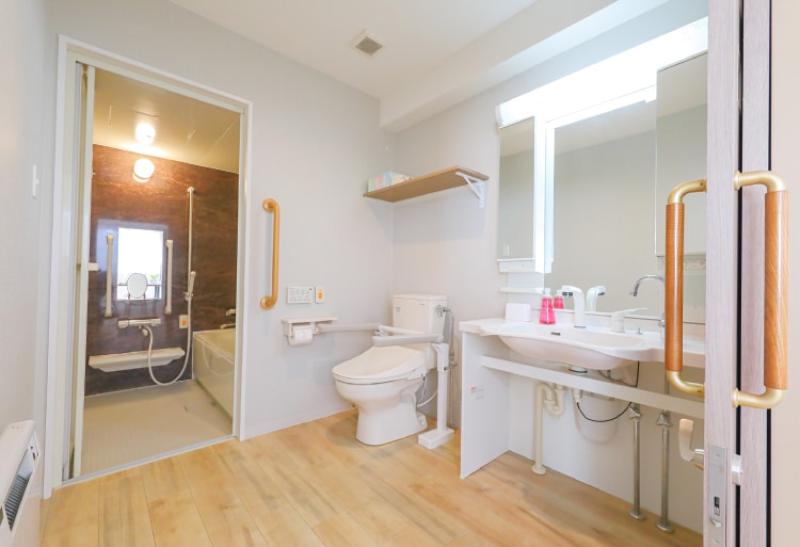 ナースコール、電気パネルヒーター、スプリンクラー、防炎カーテン、ケーブルテレビ・インターネット回線、ホテル電話、車いす対応洗面台、トイレ(温水洗浄付き、暖房・防臭便座機能付き)、手すり、クローゼット