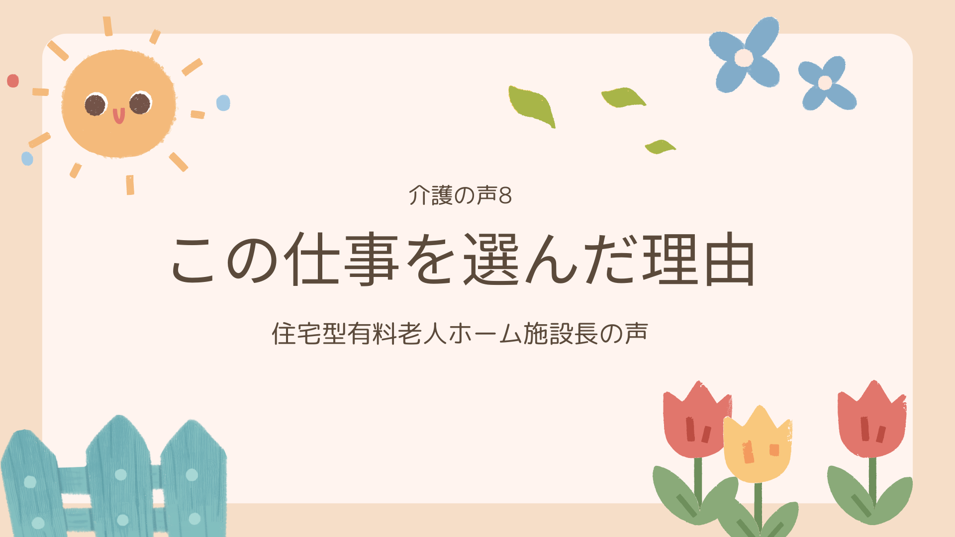 今回は住宅型有料老人ホームあおい栄町館施設長M様から頂いたお話です。 本コラムでお話を聞かせていただいたのはこの業界で…